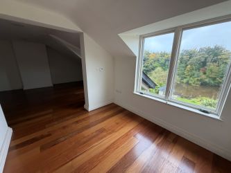 The property comprises four generously sized bedrooms, each with en-suite facilities, a welcoming reception room and study, and a modern open-plan kitchen, dining, and living area. This living space opens directly onto a balcony, providing stunning elevated views across the River Bann.